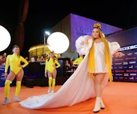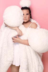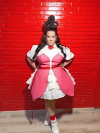 Netta Barzilai killing it at the Orange Carpet Ceremony for Eurovision 2019 Wearing BOOBA MACHO White cape, Tel Aviv