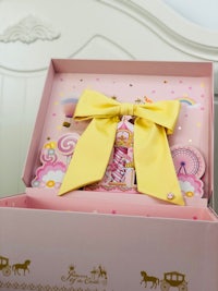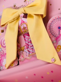 פפיון בגוון צהוב בהיר מעוטר בספל ורוד