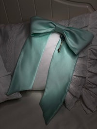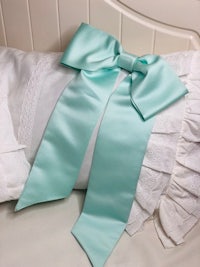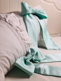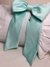 פפיון תכלת-מנטה עשוי כותנה - מעוטר בקומקום לבן