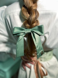 ״אמנדה״ פפיון ירוק בגוון ירקרק עדין עם מעט ברק ואבזם סוס-נדנדה