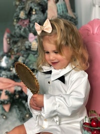 ״״אניה הקטנה״ פפיון עשוי בד ברוקד יוקרתי בעל עיטורים מוזהבים מנצנצים ואבזם מפתח רוז גולד