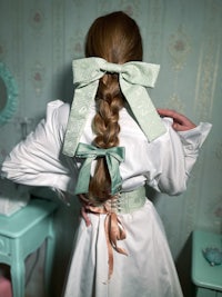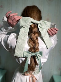 ״אסטלה אסתר״ פפיון בגוון ירוק פסטלי עשוי בד ברוקד יפהפה