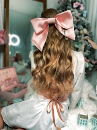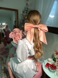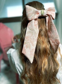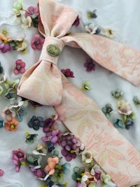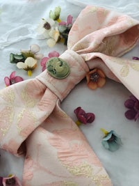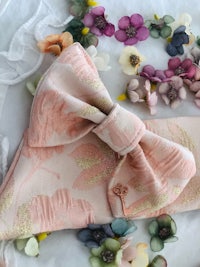 ״״אניה הקטנה״ פפיון עשוי בד ברוקד יוקרתי בעל עיטורים מוזהבים מנצנצים ואבזם מפתח רוז גולד