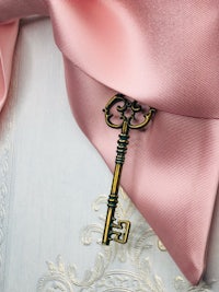 ״הו דארלינג״ פפיון יפהפה, גדול, מבד קשיח ומעט ברק, מעוטר במפתח רוז גולד קטן