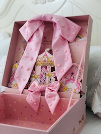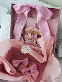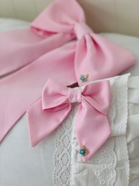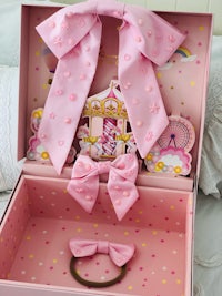 ״בי מיי בלו בלוסום ״ סט שמיימי של פפיונים בצבע תכלת בהיר מאוד, בד מעוטר בפרחים שבולטים לפי האור, האחד קטן והדני גדול המעוטר באבזמי מראה ומסרק נסיכותיים