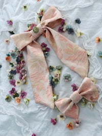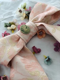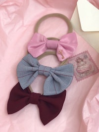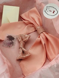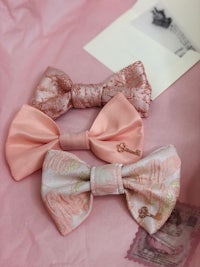 ״מיס לילי לי קוטור״ סט של שלושה פפיונים בגווני הורוד-אפרסק. ורוד מבד יוקרתי מנוחש ומנצנץ, אפרסק מאט מבד איכותי מעוטר באבזם מפתח רוז גולד, וברוקד בגווני הורוד עם רקמה מוזהבת ומנצנצת מעוטר במפתח רוז גולד.