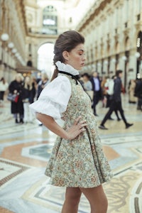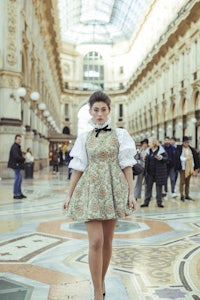 מתחת לשמלה נלבשת חולצת תחרה שוויצרית עם שרוול קצר נפוח. יחד עם השמלה ניתן לצוות ללא תוספת תשלום גם נעליים, גרביים ופפיון לשיער